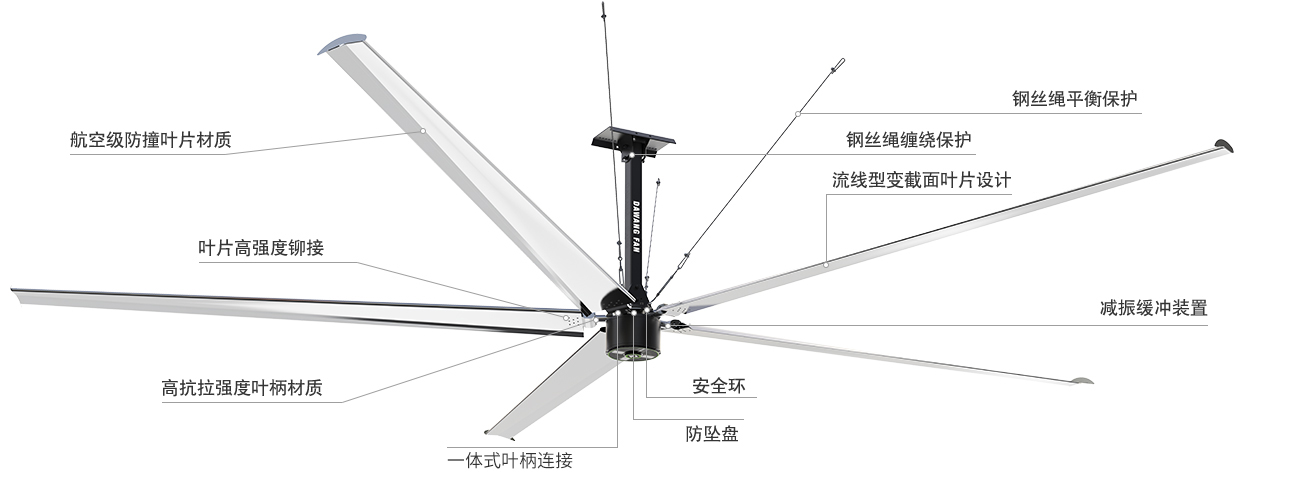 ①电机与连接杆:电机盖与连接杆设有悬浮挂环,即使电机轴松断,挂环上下自行咬合,防止坠落;
